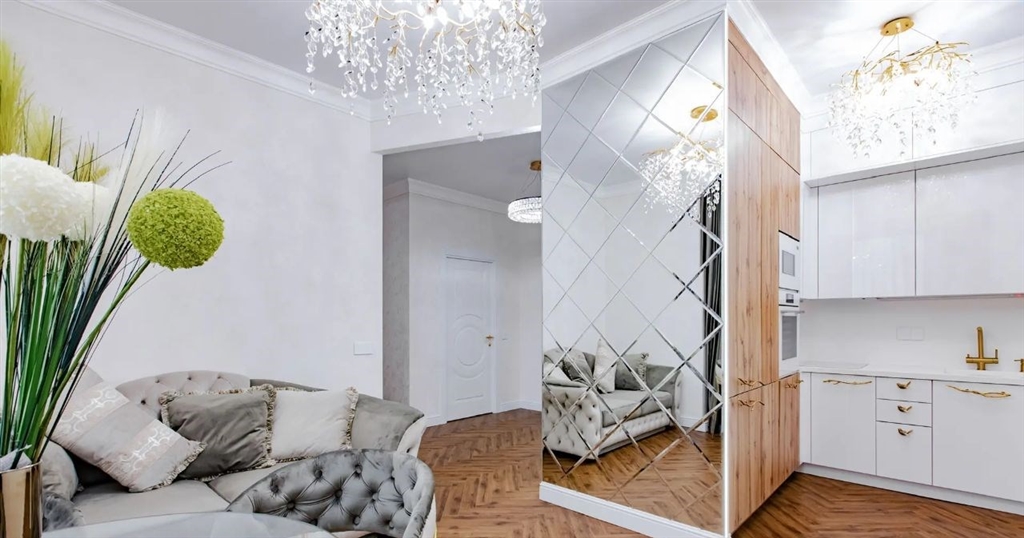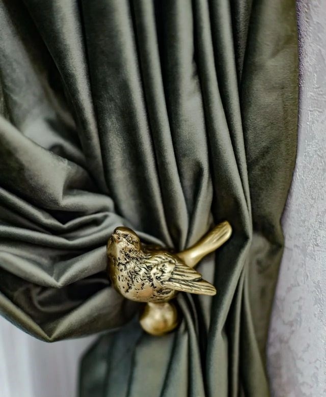 Изюминками данного стилистического решения является сочетание кипенно-белого с изумрудно-серым в текстиле. Бархатная фактура портьер сочетается с золотистым оттенком патинированной птицы-держателя штор. Стена так же имеет небольшую структуру под мраморное тиснение. Основные оттенки: золото, серо-зеленый, белоснежный, прозрачный (стекло и зеркала). Данный дизайн выполнен мной самостоятельно, с помощью вдохновения и пинтерест....