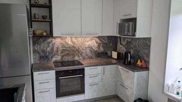 Мы сначала рисовали её на сайте. честно, сойдёт. В последний момент я, наконец, вспомнил про подсветку и вывел проводку к потолку. Если бы не это её бы вообще не было. Решили оставить кладовку. В ней стоит вертикальная стиралка. Лично мне вертикальная нравится больше. Шумоизоляция во всех стенах отличная, стиралку почти не слышно, только вибрация на отжиме ощущается. В кладовке же находится блок контроля протечек(ему там самое место.) Также там хранится вся бытовая ...