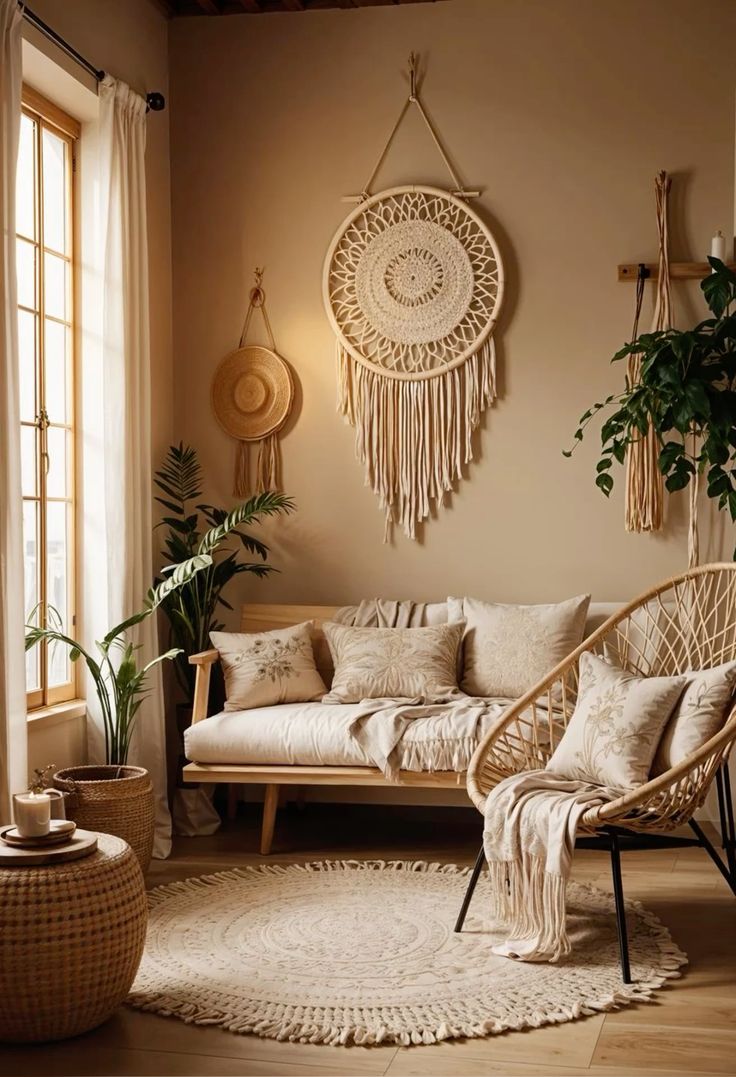 Бохо стиль для ярких, творческих квартир. Тут можно сочетать цвета, текстуры и узоры без страха переборщить. Яркие подушки, ковры с узорами, пледы, макраме на стенах, много растений и милых деталей. Мебель: чаще винтажная или с интересной текстурой, деревянная, плетёная или тканевая. Можно сочетать разные формы и эпохи, главное - чтобы вещи были функциональными и удобными. Текстиль: ковры с орнаментом, пледы, подушки, занавески - предпочтительно натуральные материал...