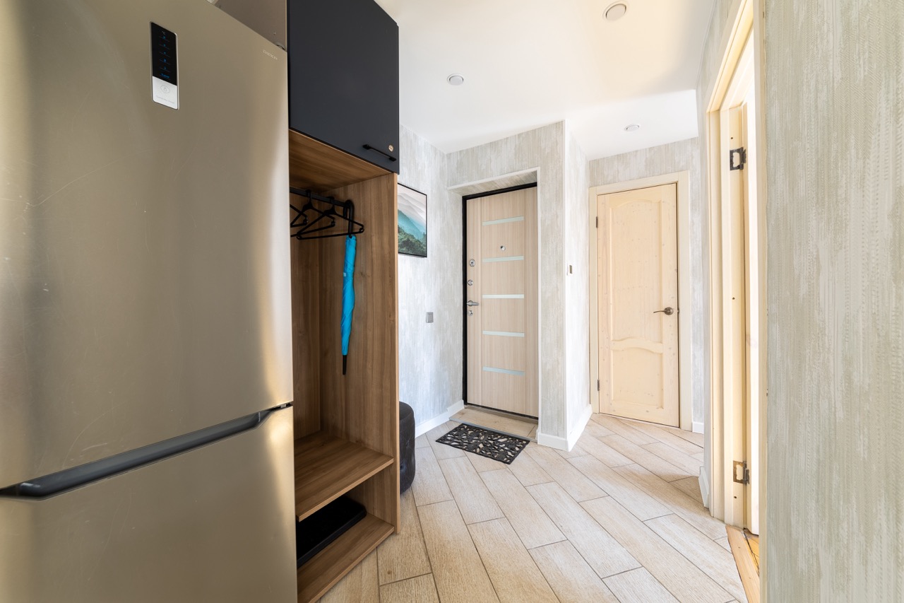 Я купил однушку в типичной «брежневке» — 33 квадрата на третьем этаже кирпичного дома, коридор как коридор, кухня маленькая, висит обои с проплешинами и в санузле плитка в пятнах, но несущие стены целы и окна не текут. Хотелось не делать капитальную перепланировку, а просто превратить это место в тёплый и удобный дом для одного человека с минимальными вложениями и быстренько — чтобы жить нормально через месяц‑полтора. Делал косметический ремонт: не трогал стояки и разводку, не ломал стены, но старался выжать максимум уюта из имеющегося пространства.