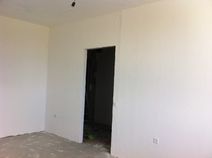 Первые слои шпатлёвки я сделала сама. Финишные не засняла.. на радостях забыла. Стены оставила под обои, чтобы потом выбрать цвет и текстуру.