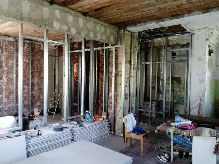 итак,что же пришлось разобрать: старые перегородки полы до основания остатки кухни душевую кабину старые трубы