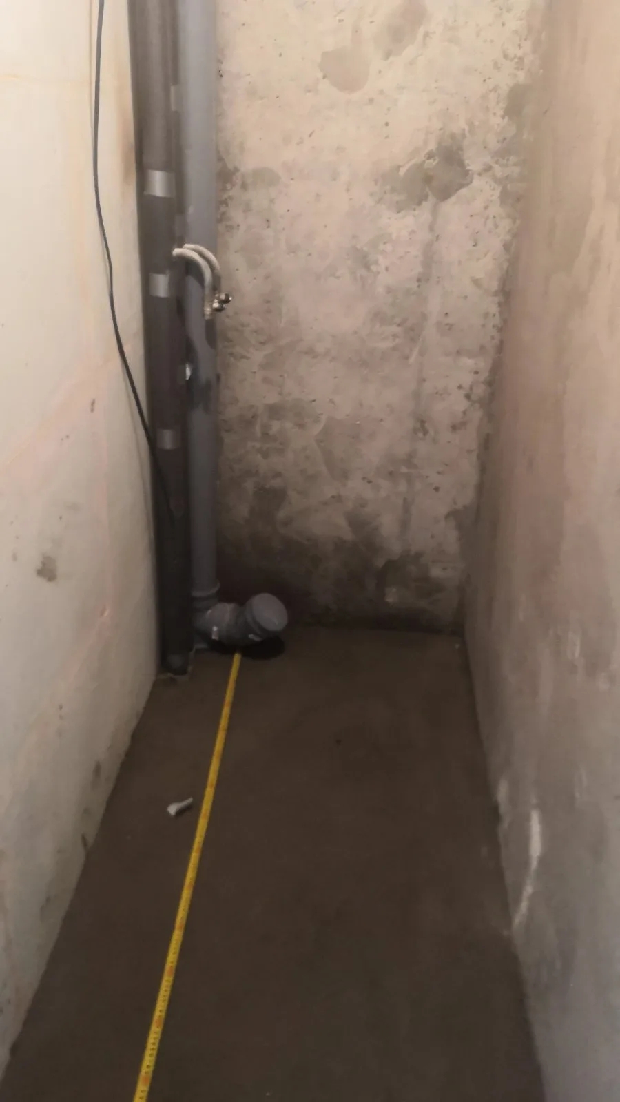 Вот такой у нас будущий туалет. Вход, потом 2 метра, ширина около метра наверное, беременный мозг не помнит.