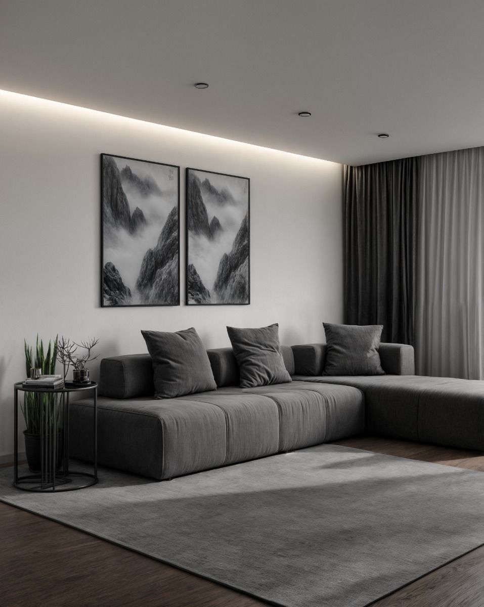 Минимализм любит чёткие линии, прямые формы и нейтральные цвета: серый, белый, бежевый, иногда тёмные акценты.