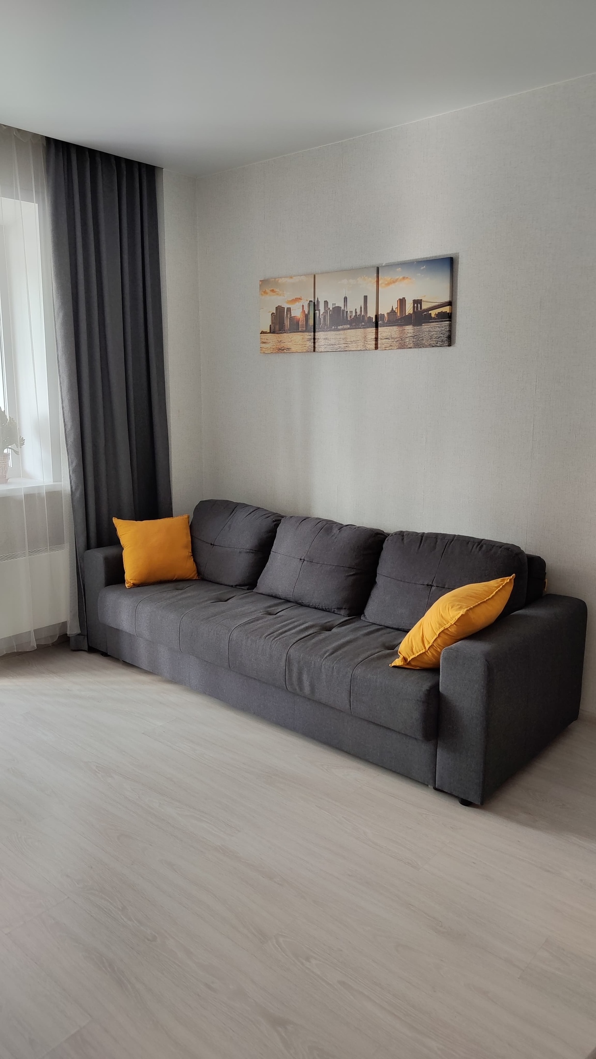 НУ вот и повесил шторы. Долго выбирал - то цвет не нравился, то ткань сильно просвечивает. В итоге взял серые, плотные, чтоб утром не светило в глаза. И к интерьеру комнаты тоже очень даже подходит. Сначала повесил криво из за проблем с карнизом, пришлось делать все заново. Зато теперь комната стала уютнее и можно не переживать за солнце в окне, глазам сразу легче. Смотрите как получилось...