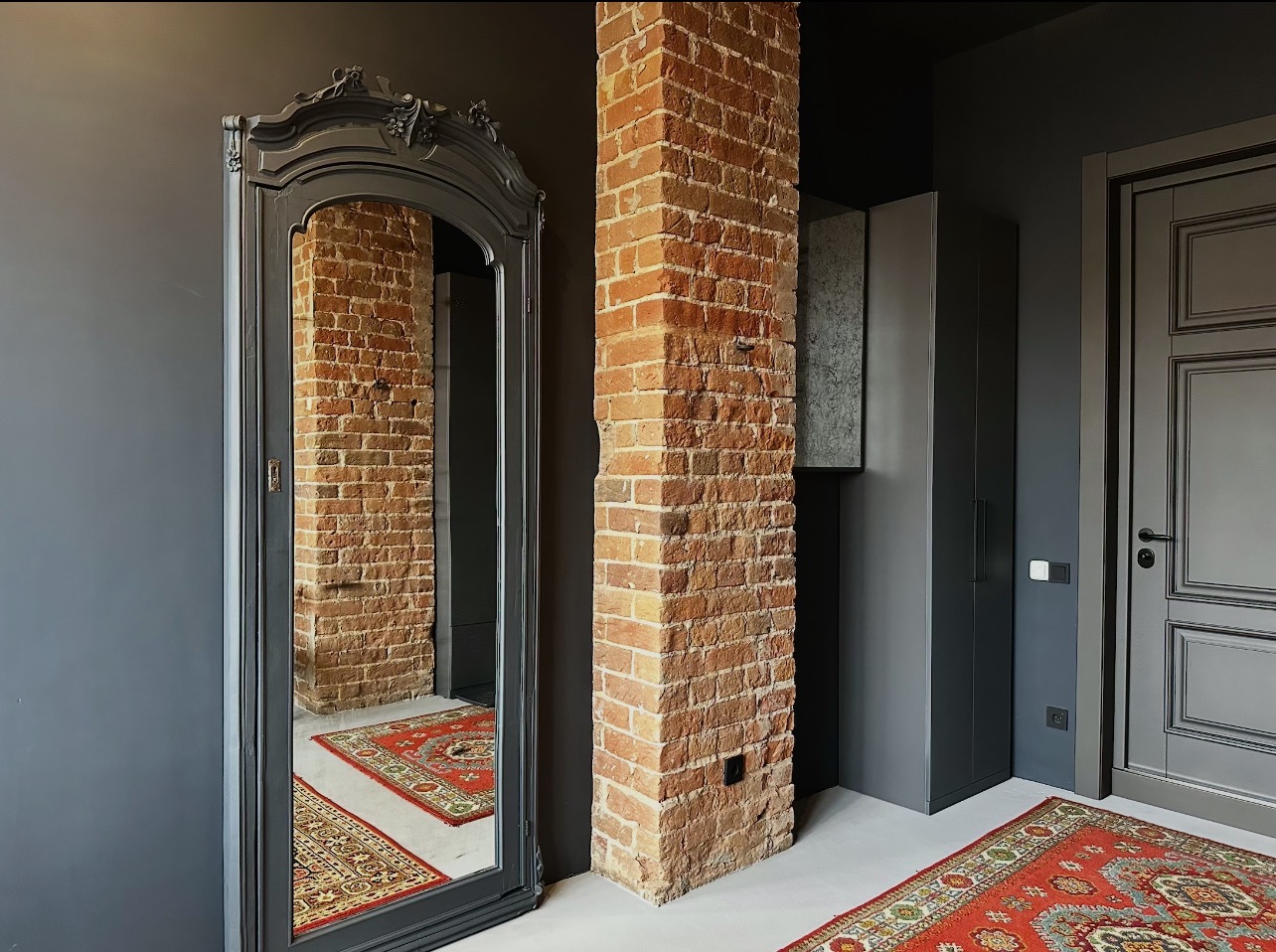 А вот по окнам в будущей спальне нам самим пришлось принять сложное и спорное решение. Мы демонтаже из среднего окна кирпичей, обнаружили там старую раму, но, решили оставить нишу и аккуратно заложили. Все же четвертое окно в 9 метровой комнате не сильно нужно, а ниша для винтажной аудиосистемы, биокамина или книжной полки - очень даже.