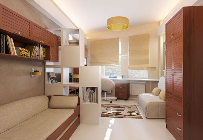 Барная стойка представляет собой ещё один способ разграничить пространство. Конечно, чаще всего она делит помещение на гостиную и кухню. Это логично, потому что именно эти две зоны чаще всего находятся в одной комнате в маленьких квартирах-студиях.