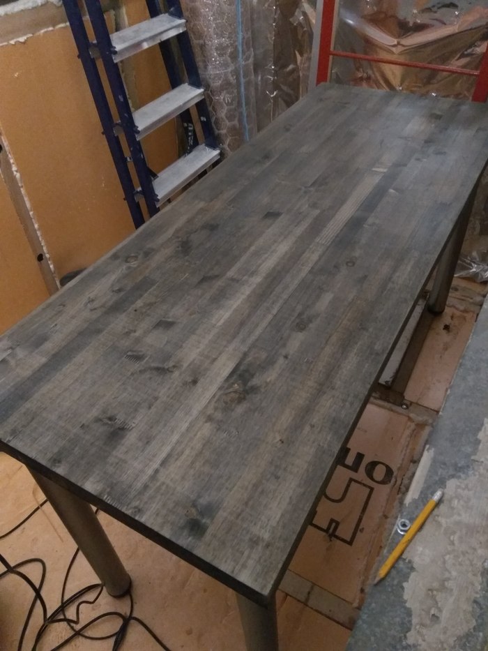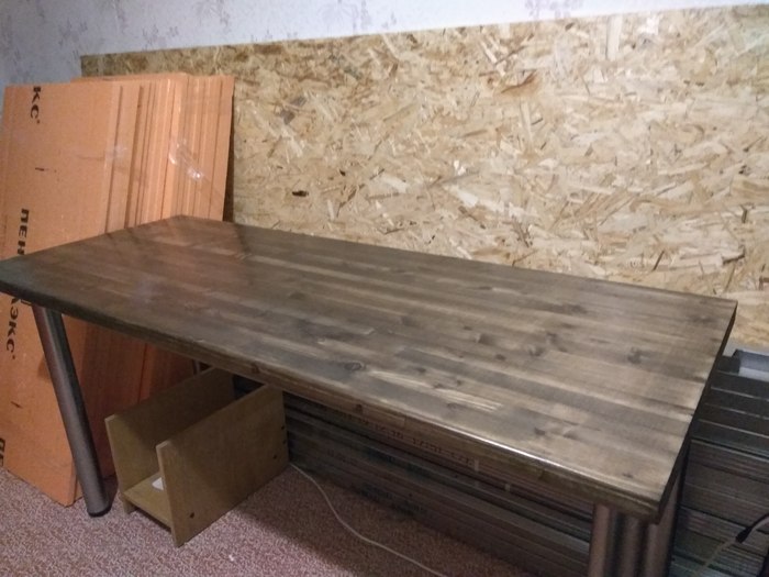 Итак, приступим. Когда принесли всё домой, я просто прикрутил ножки к столешнице, чтобы уже хоть какой-то стол появился.
