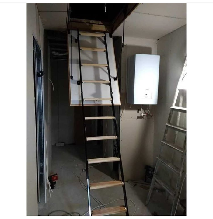 Ну и лестница. Наконец-то я сама поднялась на чердак и прошлась по нему. Выявила один минус - спускаться мне страшно. Нужно сделать сверху перила, чтобы было за что ухватиться (а не за пол), когда ступаешь на первую ступеньку. Но это только моя проблема - муж спускается без проблем.