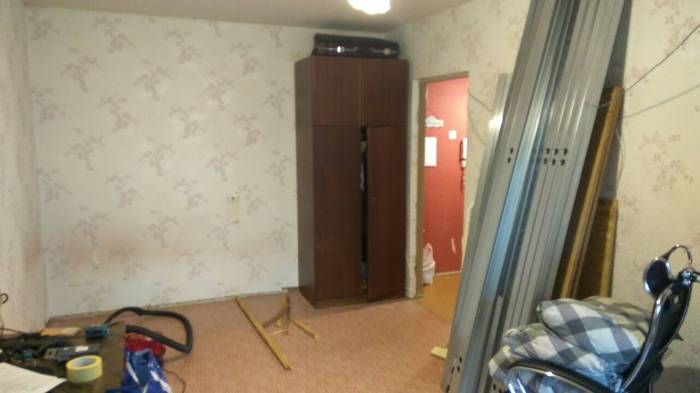 Потом снова пришёл папа помогать, и мы начали класть пол в комнате. Всё это сопровождалось перетаскиванием шкафов, потому что деть их было тупо некуда.
