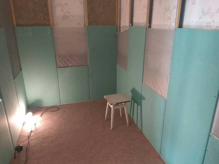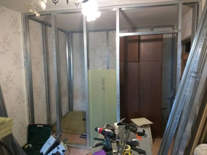На следующий день пришёл помогать отец, и мы за два дня возвели каркас из профиля для кабинета. Всё это ради звукоизоляции по сути. Да, съедается много места, конечно, но в целом не критично.