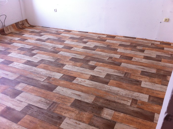 Пол пока не заморачивала кинула линолеум. Весело было тащить рулон шириной 5 м по чёрной лестнице, ведь в лифт он не влез.