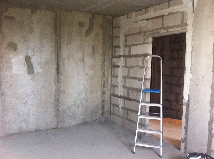 маячки, отвесы, разведение раствора, ошкуривание и пыль. Особенно тяжело дались потолки