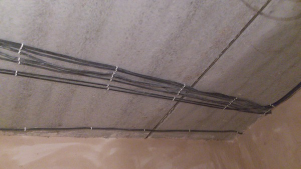 Проводку веду по потолку (будет закрыта натяжным потолком). Розетки выбрал 3 мм² Освещение 1,5 мм² Варочная панель и духовка два провода 6 мм²