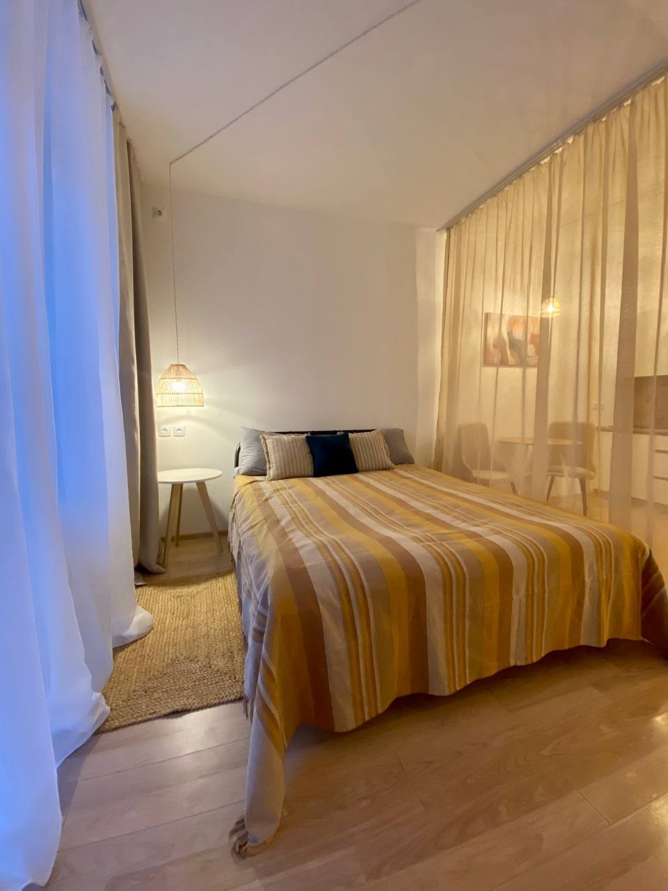 Кровать (я не признаю диваны для сна, никакие) я не додумалась никак отделить, кроме как тюлем. Это наиболее бюджетно- карниз к потолку и все на мази.