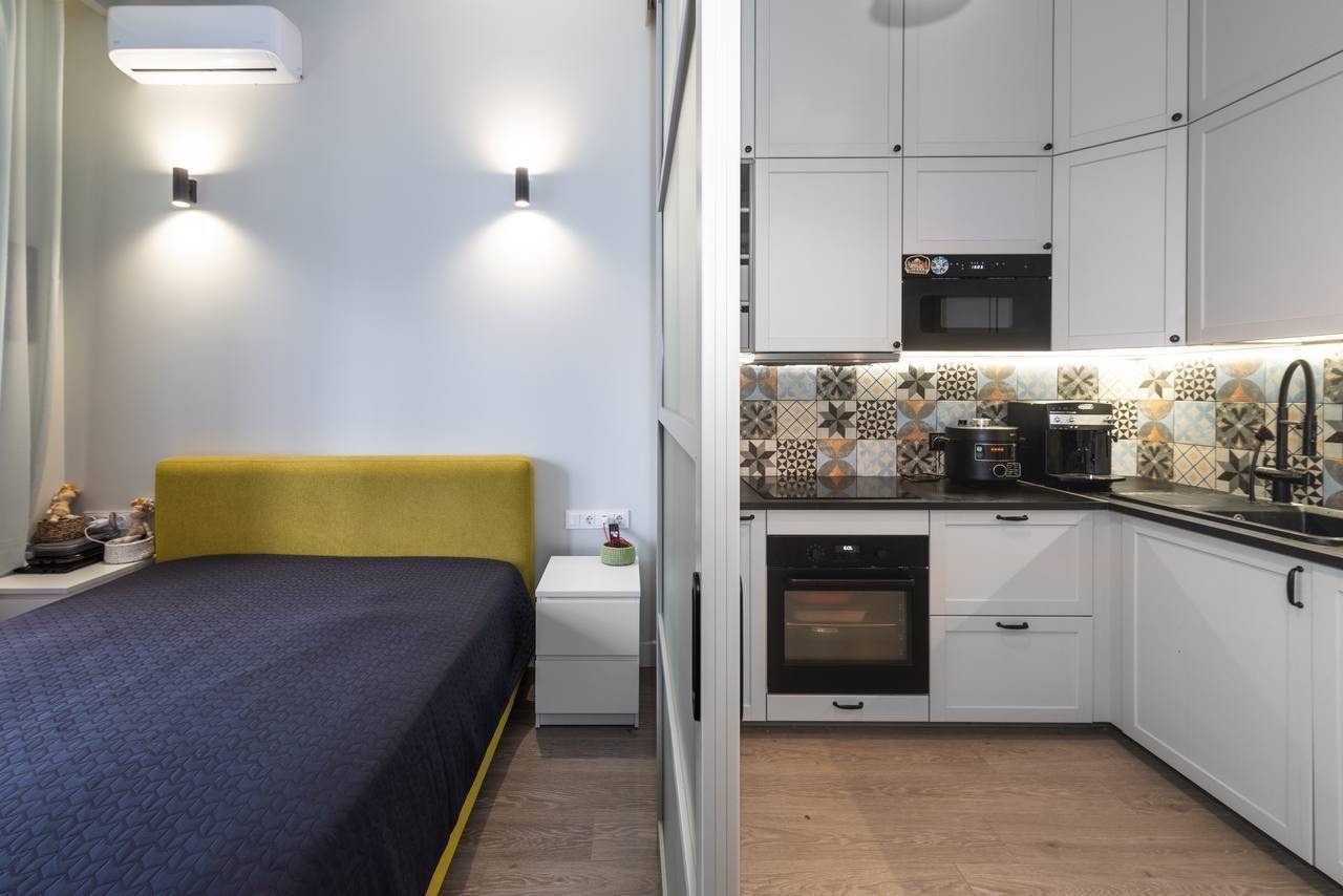 Раздвижная стенка-дверь получилась необычной, светлой. Площади совсем мало, поэтому пришлось делать все в белых тонах. Как вы видели уже, девчули мои, яркая у меня только кровать. Принцесса я только в душе (и в душе, ага). поэтому розовую делать не стала, да и я уже не подросток.