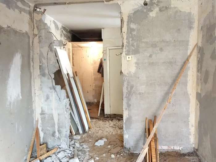 Когда я её увидел… честно, захотелось просто всё выбросить на помойку. Старые обои, облезлые двери, плитка времен мамонтов… и прочие нюансы. Это было начало 2023-го, квартиры стоили совсем смешно