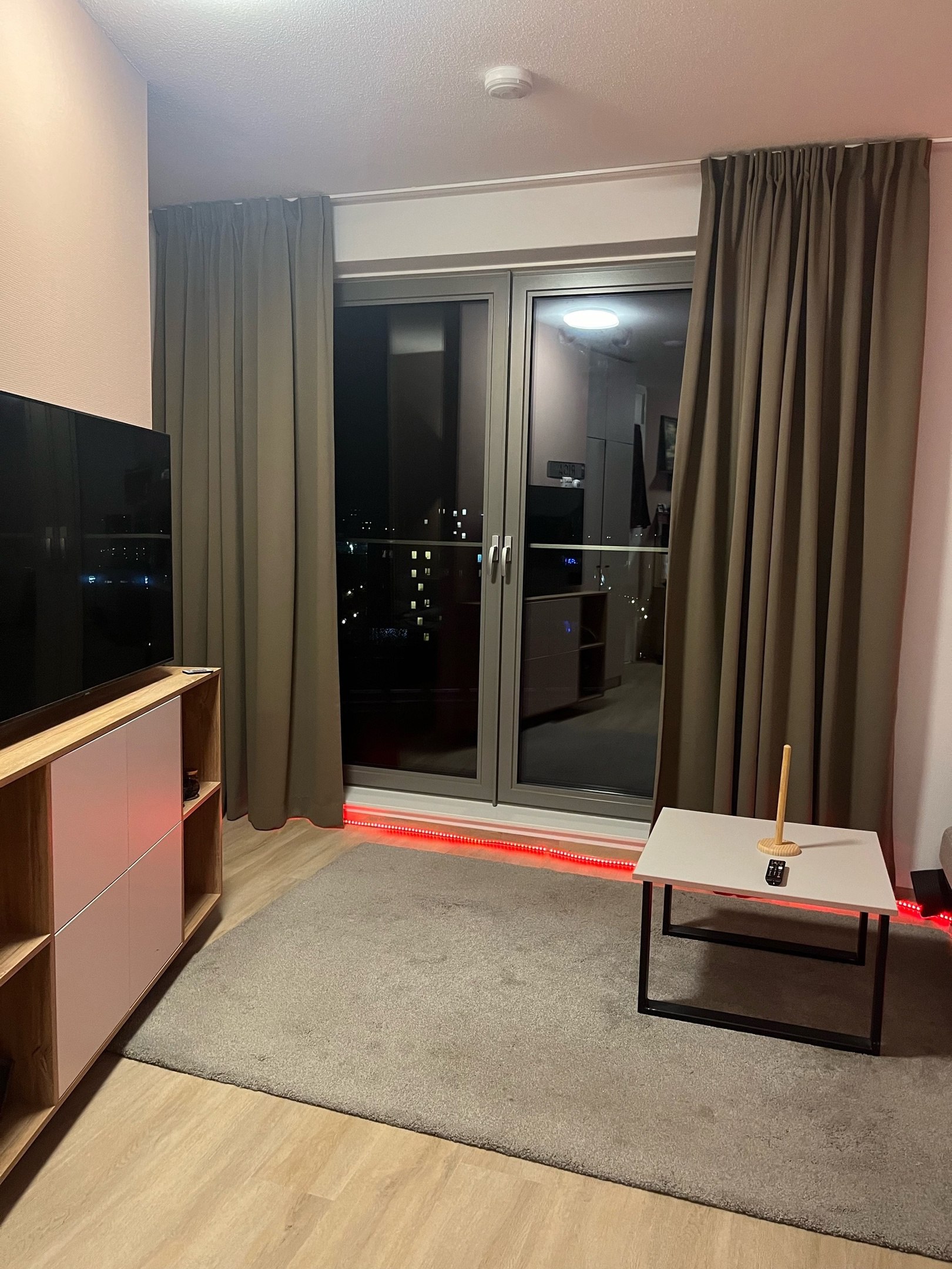 всем привет! Нашла этот сайт недавно и хочу показать свою квартиру тоже. Город не сообщаю, а то вдруг захотите прийти)) Квартира-студия со свободной планировкой и мне кажется неплохо удалось ее зонировать и распределит обязаности дома! Панорманые окна, площадь 48 квадратов!